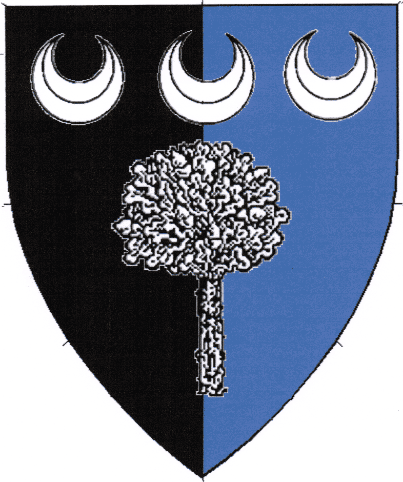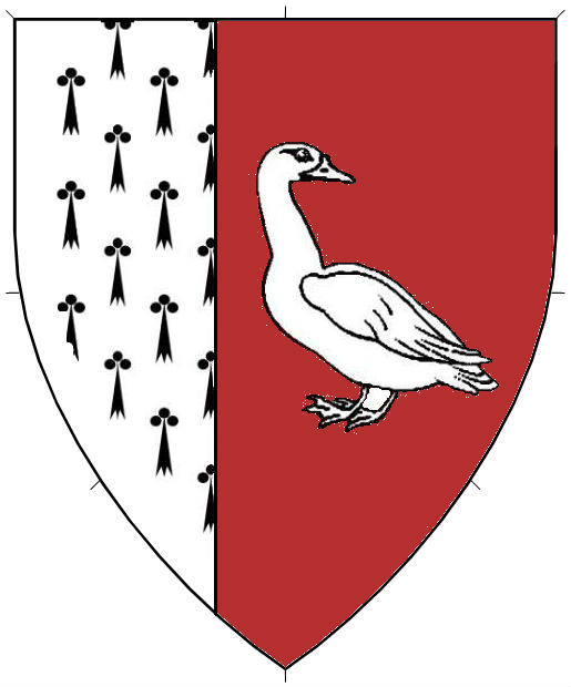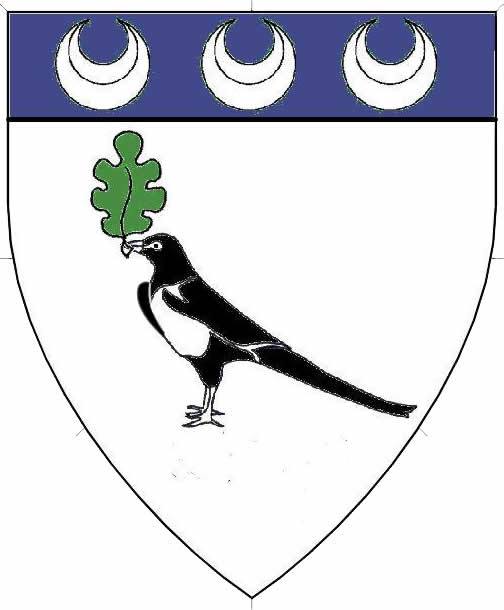 For Ms. Steele we have the same colors and line divide however in this particular case we take a white (argent) rose and on the white (argent) section make a black (sable) cat. On top of that fix a black (sable) bordure with a semi of acorns in white (argent) and between the charges, the border, the semi of acorns we get many ways to clear any conflict.