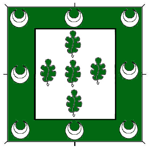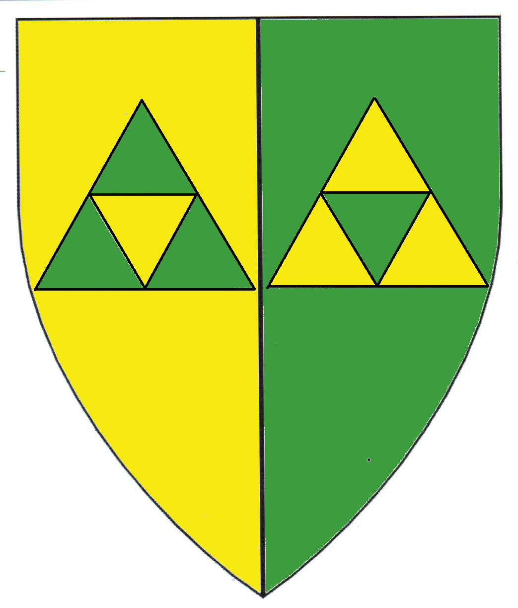 First of all for Ms. Steele: She at first was looking for a quarterly (or a shield broken up in four parts) with a color and different charge in each quadrant. Rule one for this would been the marshalling issue that I have become more and more familiar with as of late. The issue becomes, each quadrant becomes a bit more complicated when you start looking into the colors and different charges and over all becomes harder and harder to pass. How do you give what she is looking for and at the same time, make this somewhat a bit easier for the college to accept.
