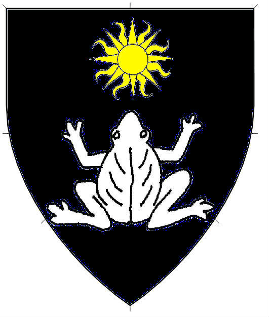 “Sable, a frog tergaint argent, in chief a sun OR”